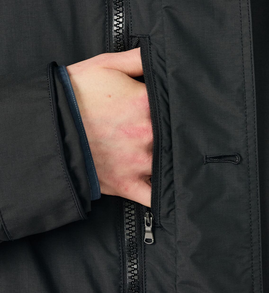 ・衿裏には防風用のスロートタブ付き。