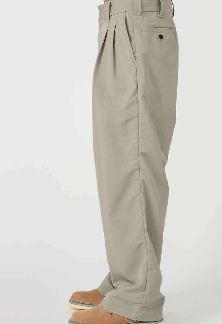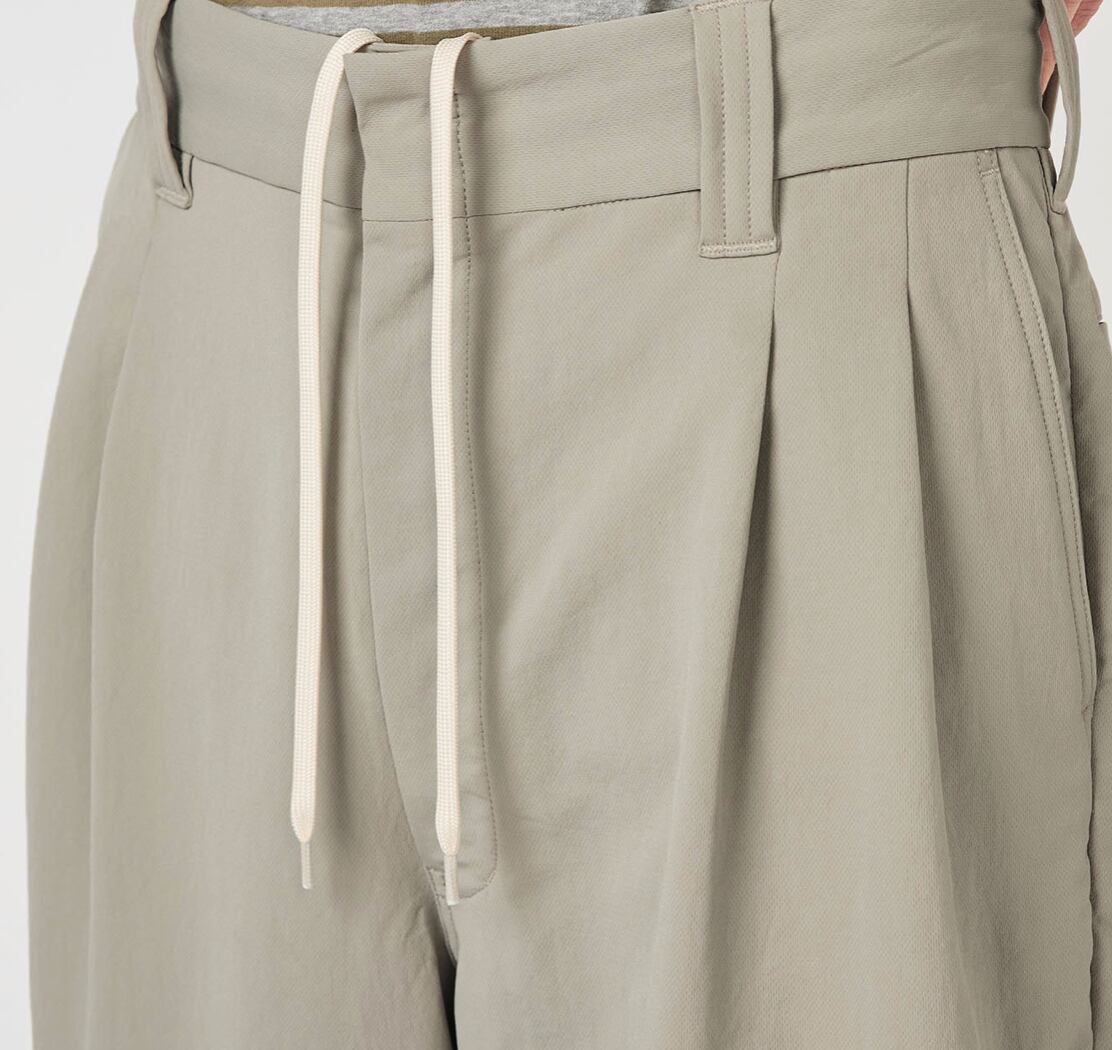 ・Wide straight-cut two-tuck pants made with ALPHADRY®, featuring excellent moisture-wicking, quick-drying, and stretch properties.