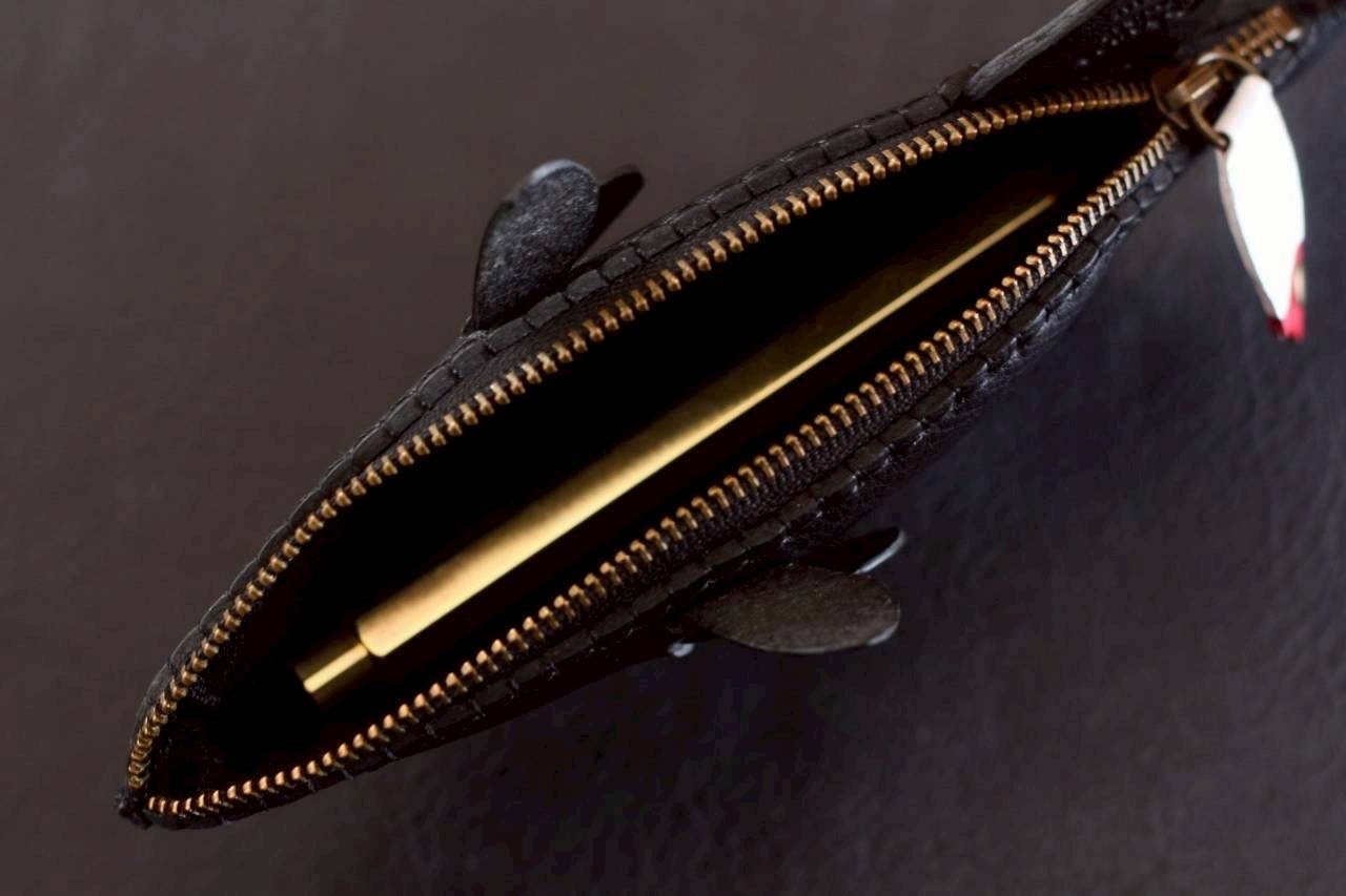 フィッシングシーンの王者「ブラックバス」の躍動感を、本革と手仕事で表現した特別なペンケースです。