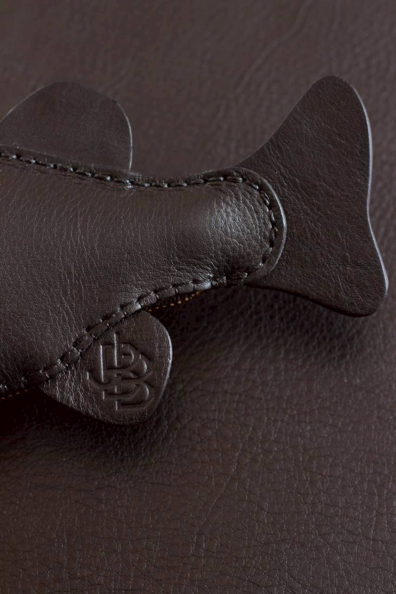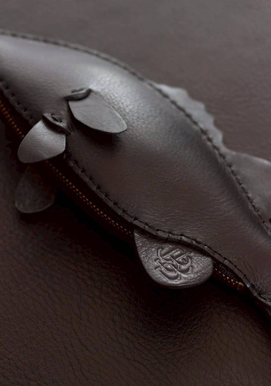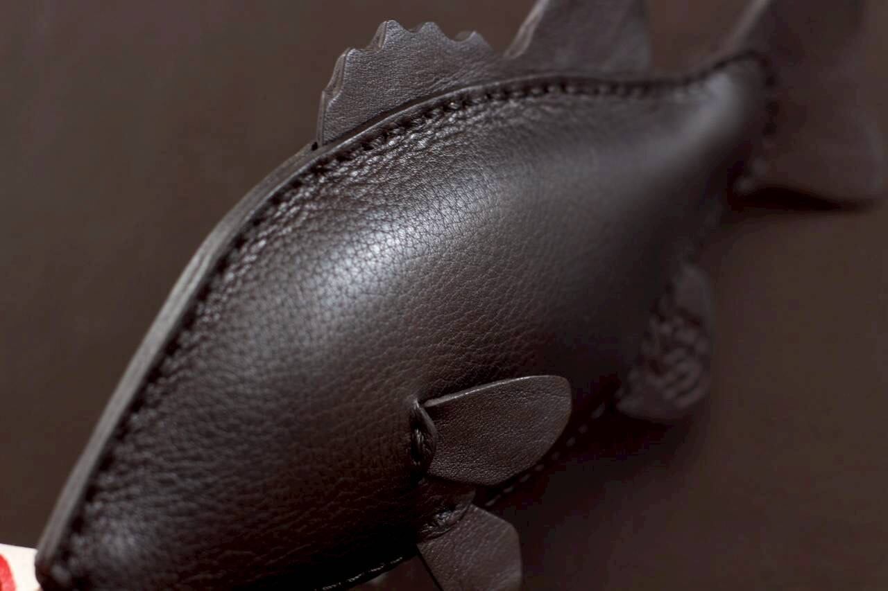 魚のシルエットを革の立体感で表現した、遊び心あふれるデザインです。