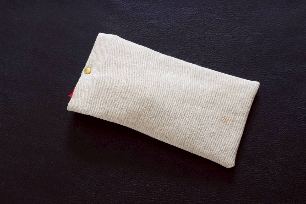 リネンプロテクションポーチ: 大切なケースを優しく守るリネン(麻)製のポーチが付属。